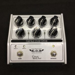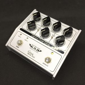 G.O.D Genius Overdrive は、十分な歪みと、低域の迫力・高域の伸びを持ったオーバードライブ/ディストーション・ペダル。7つのツマミと2つのフットスイッチを搭載、トーンが異なる2チャンネルの歪みはA/B切替で使用できる、Crews Maniac Sound を代表するエフェクターです。
