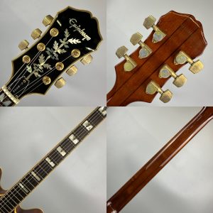そのルーツは1958年に登場したオリジナルSheratonにあり、ES-335系の構造をベースにしながらも、より豪華な装飾と高級感を与えられたモデルとして確立されています。