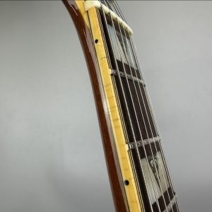 ヘッドのツリーヴァインインレイや、指板のブロックインレイも通常のもではなくこのモデルの為にデザインされている点などが感じ取られ、上位モデルにふさわしい華やかさを放っております。