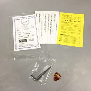 付属品は純正ソフトケース、製品保証書、取扱説明書、レンチ、ピックです。
