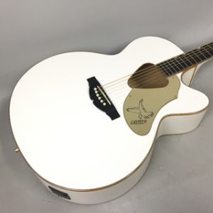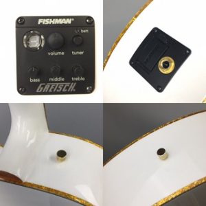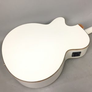 優美なルックスを持ったランチャー・ファルコンのエレアコ ホワイトとゴールドの高級感のあるルックス 3バンドEQによりサウンドメイクも柔軟に対応