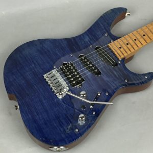 Sapphire Blue Gloss の透明感あるブルーは、フレイムの杢目を最大限に引き出し、